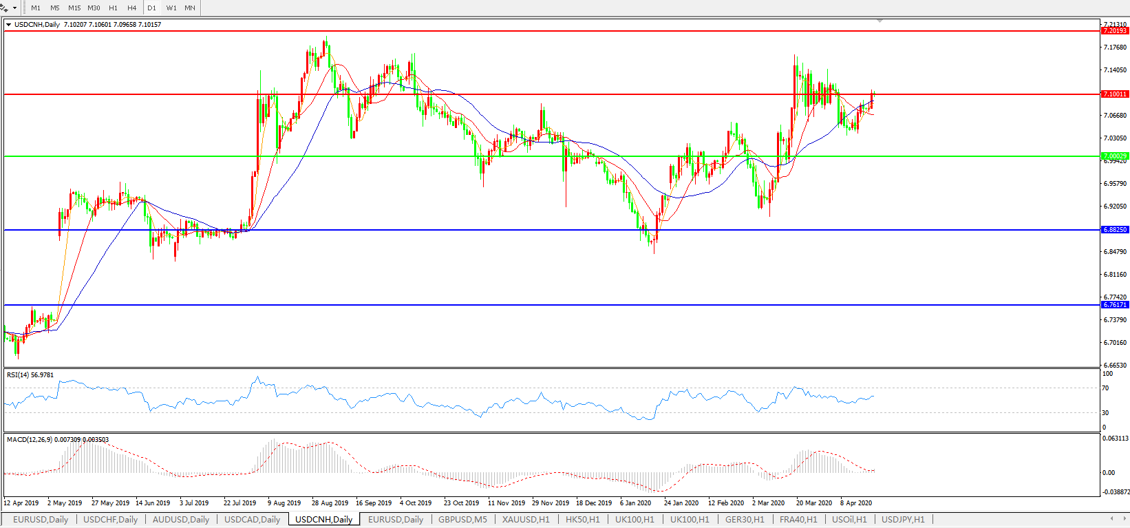 美元兑人民币USDCNH 日线图: