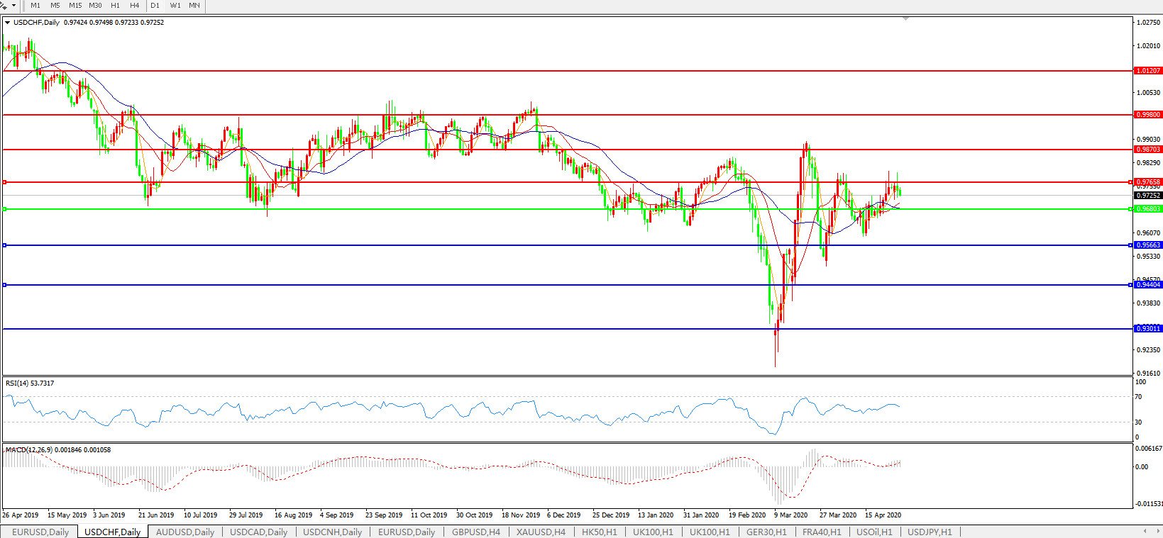 交易策略:0.9680上方看涨,目标0.9765、0.9870