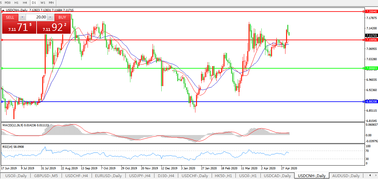 美元兑人民币USDCNH 日线图: