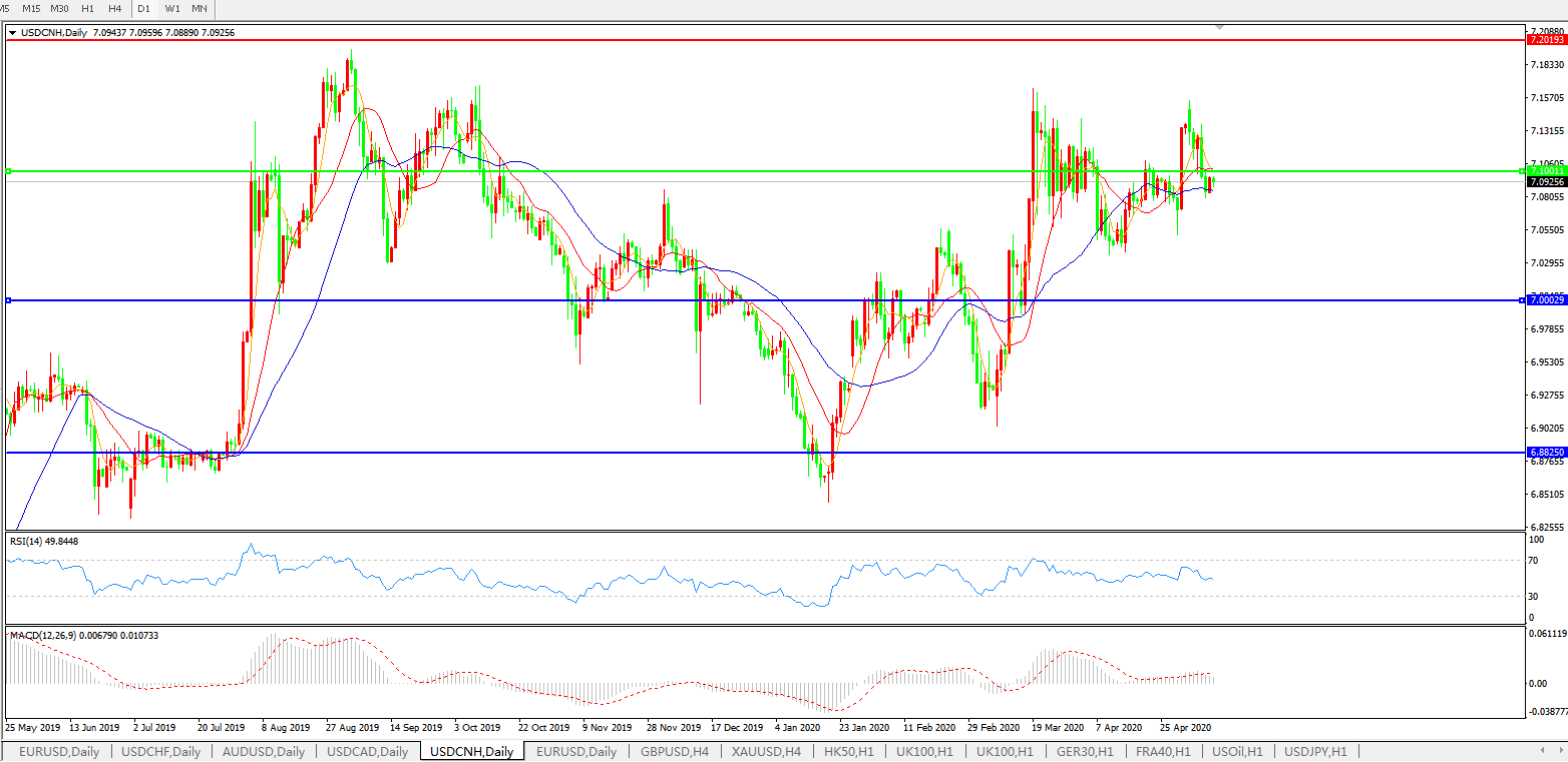 美元兑人民币USDCNH    日线图: