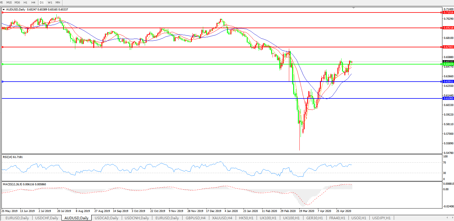 交易策略:0.6500上方看涨,目标0.6700、0.6920
