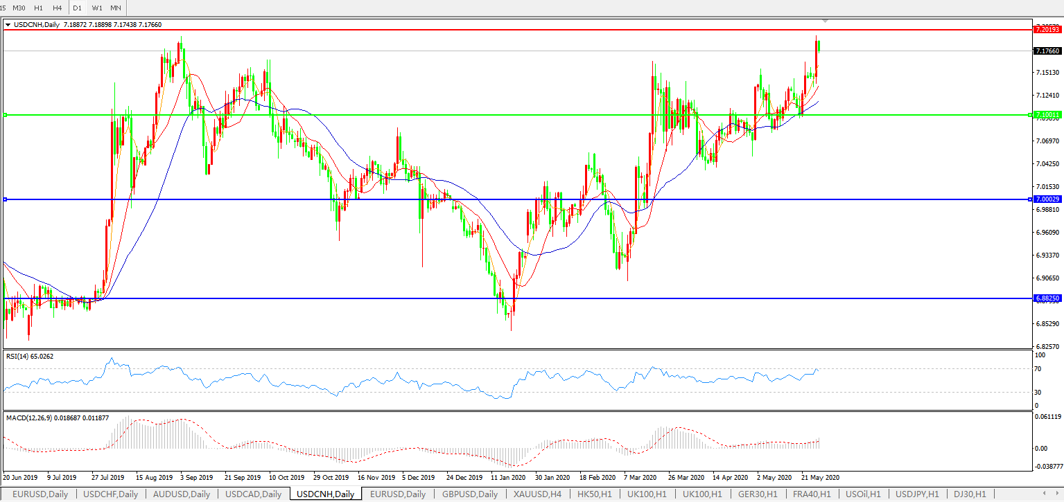 交易策略: 在7.1000之上,看涨,目标价位为7.2000,然后为7.3000。