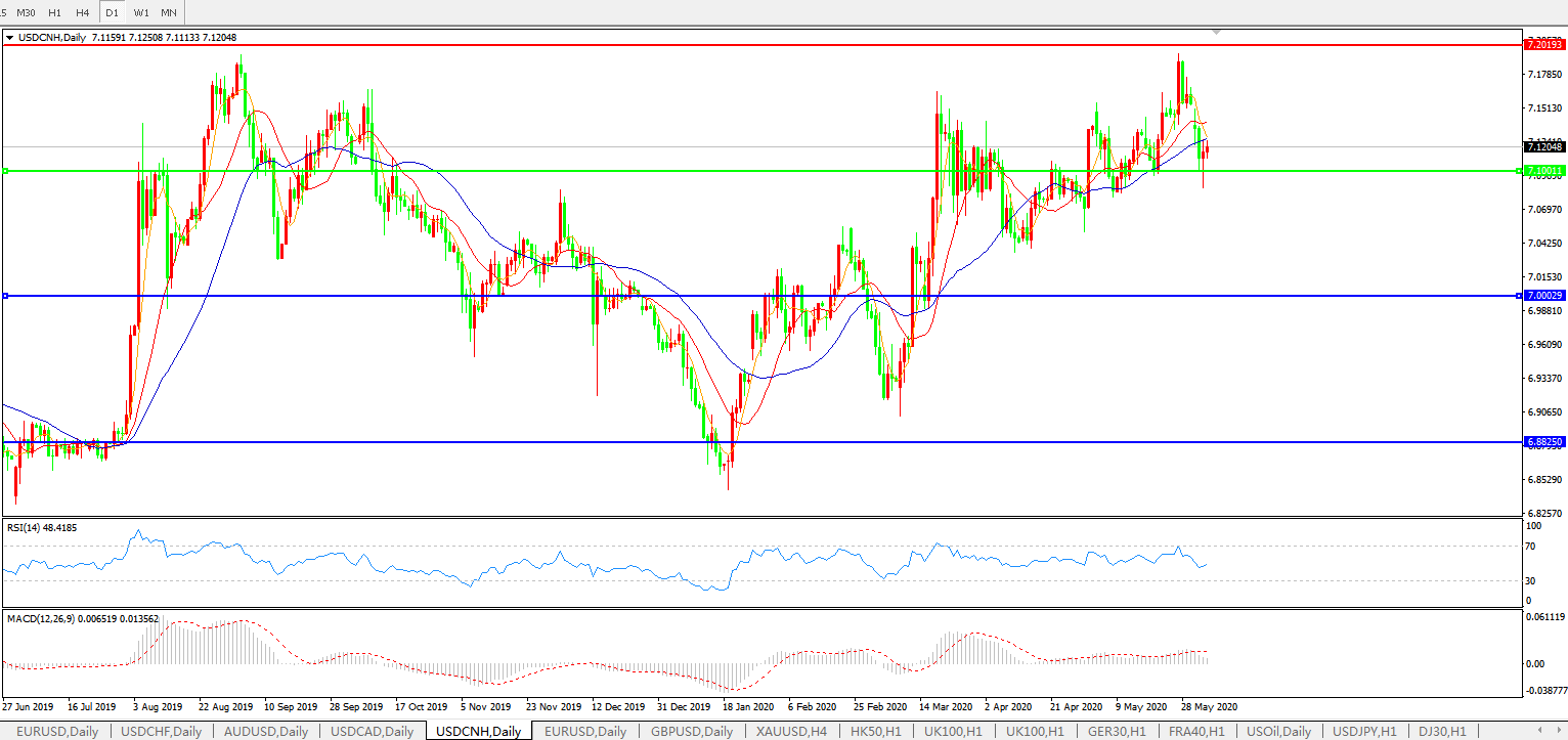 美元兑人民币USDCNH 日线图: