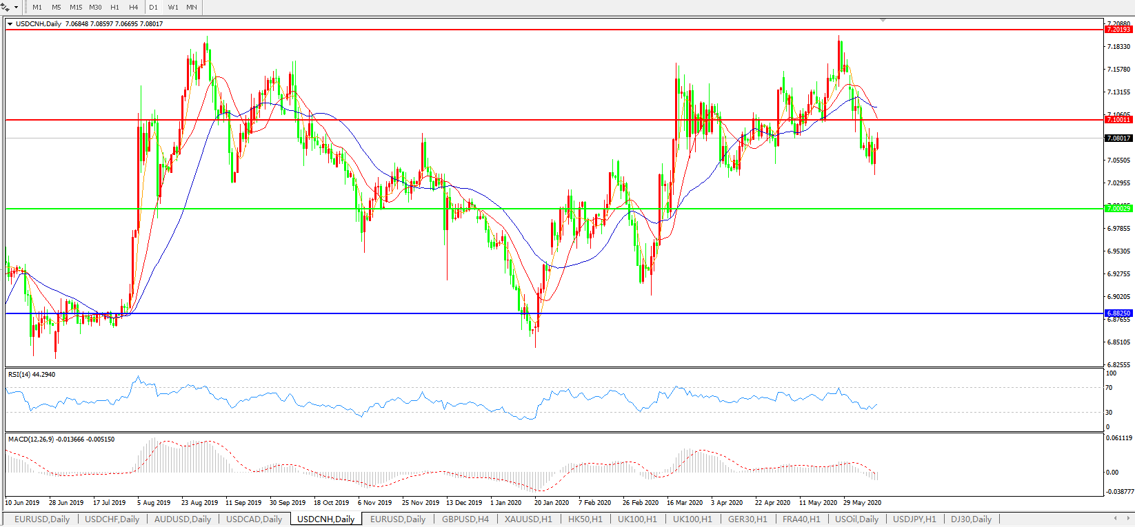 美元兑人民币USDCNH 日线图: