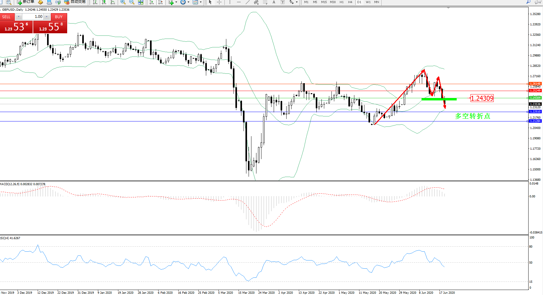 交易策略:1.24309下方看跌,目标1.22510、1.21284