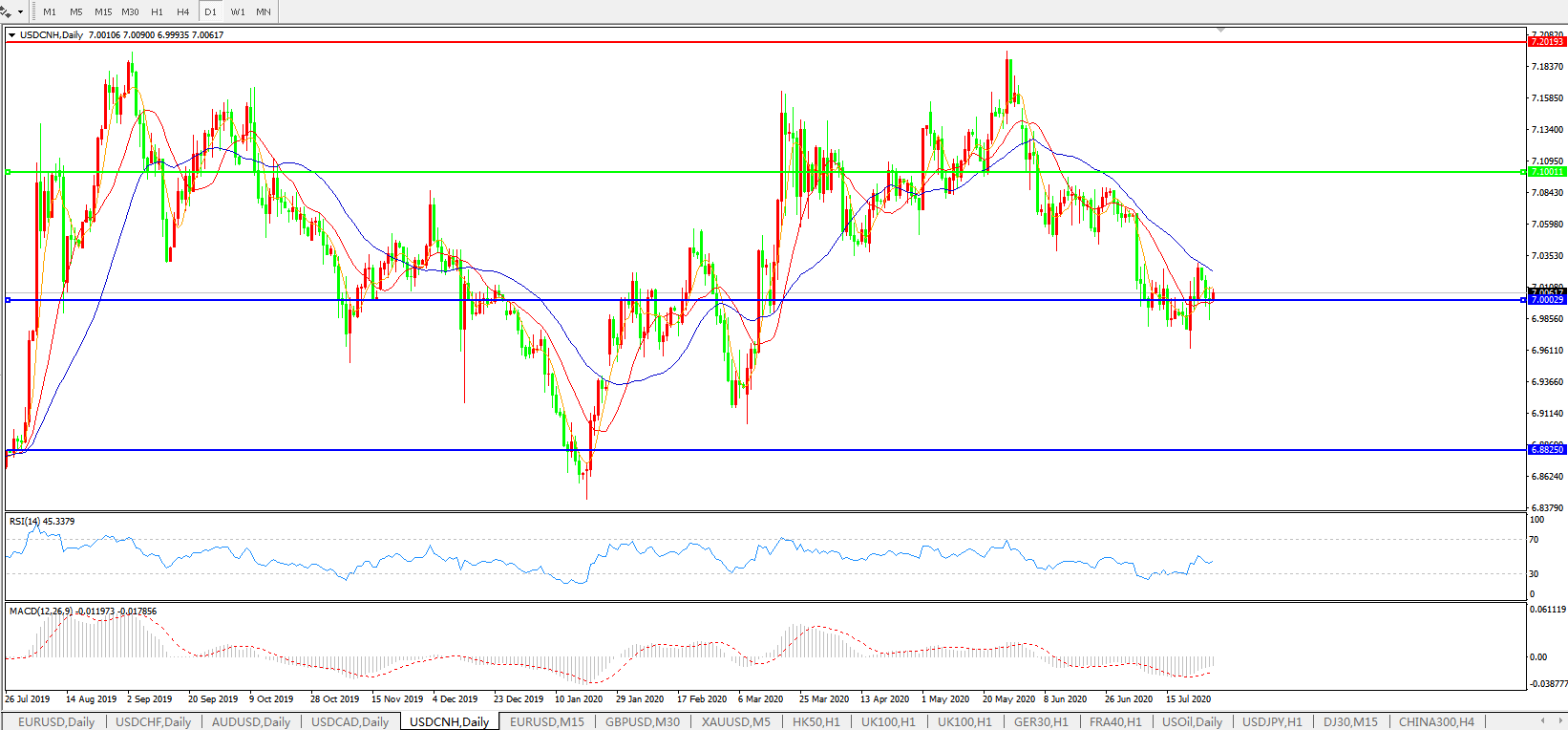 美元兑人民币USDCNH 日线图: