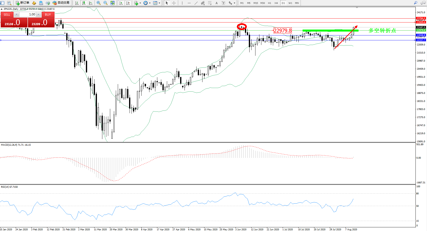 日经225指数8月12日(周三)收盘上涨77.76点,涨幅0.34%,报22828.00点。日本的新冠肺炎疫情形势不容乐观,日本政府却进一步松绑了外国人入境管制。日本外务省网站消息显示,有条件地允许外国人入境日本。此次开放入境的对象是4月3日前所有持日本居留资格的外国人。符合条件的人员,在取得离开出发地之前72小时内的核酸检测阴性证明之后,均可以入境日本。日本外务省预计,从5日起,将有约8.8万外籍人士可再次进入日本。到达日本后,上述外国人还要再次接受核酸检测,并进行2周的自主隔离。