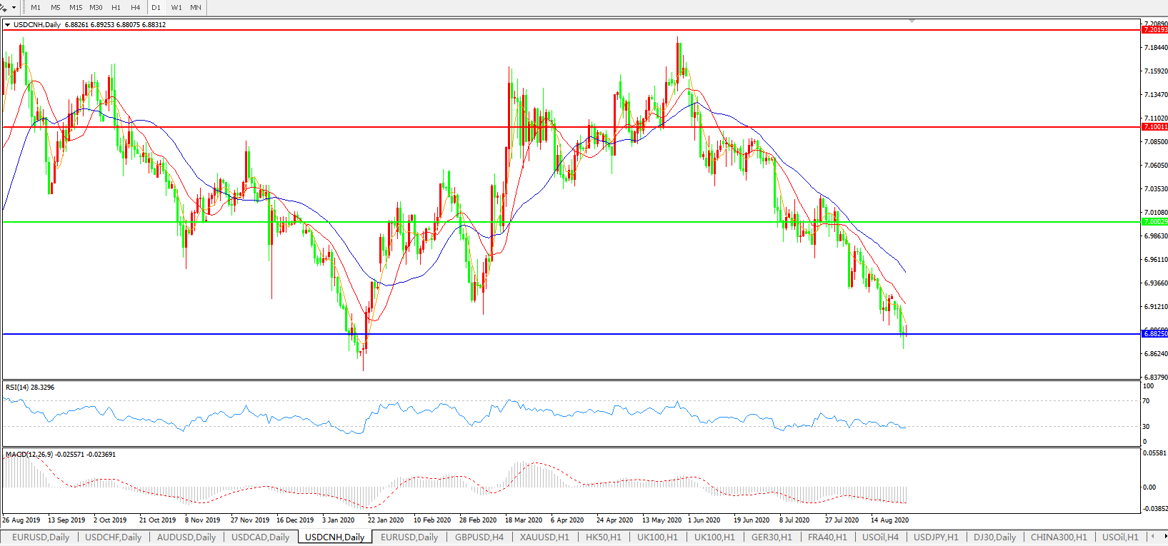 美元兑人民币USDCNH 日线图: