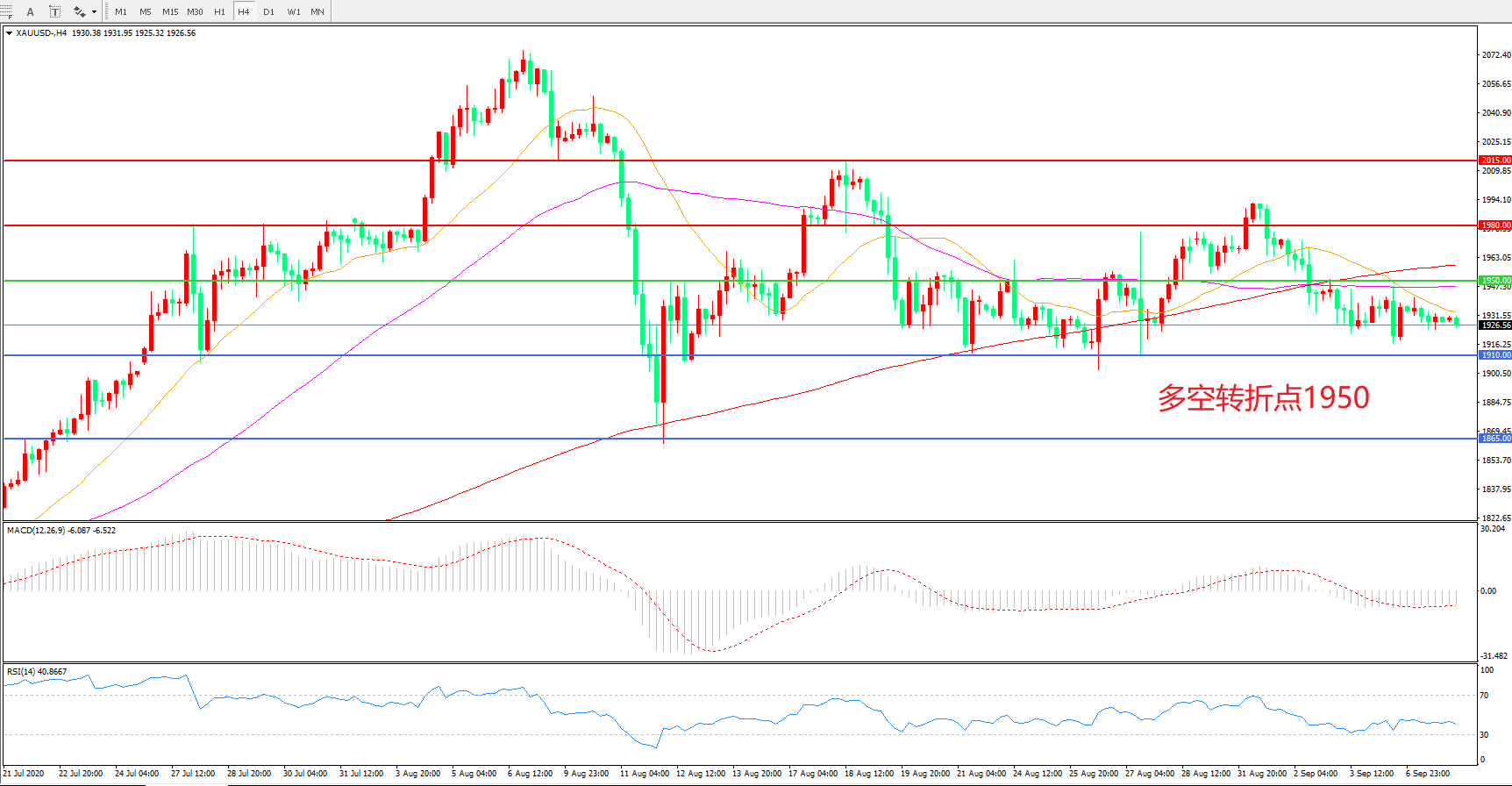交易策略:在1950.00之下看跌,目标1910.00   1865.00
