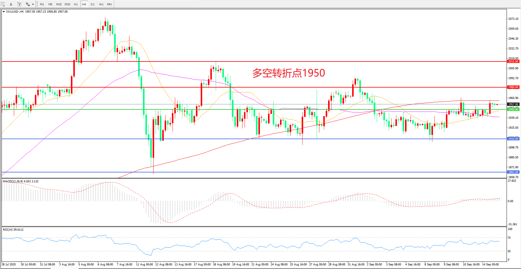 备选策略:在1950之下看跌,目标1910.00 1865.00