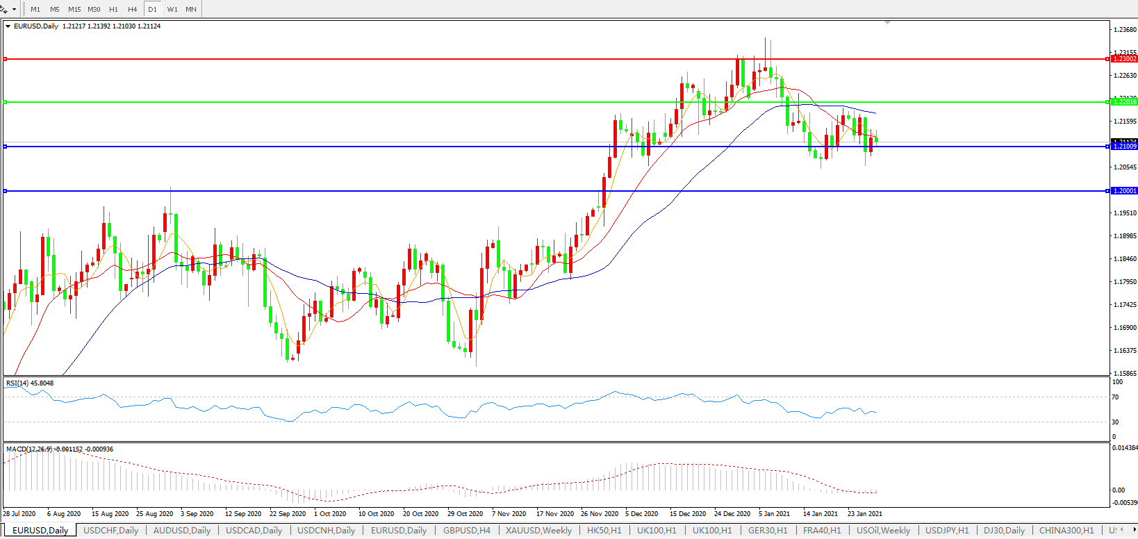 交易策略:1.2200下方看跌,目标1.2100、1.2000