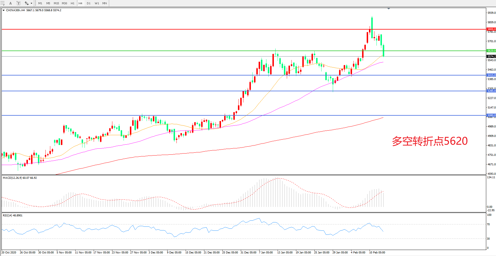 交易策略:在5620.00之下看跌,目标5415.00 5285.00