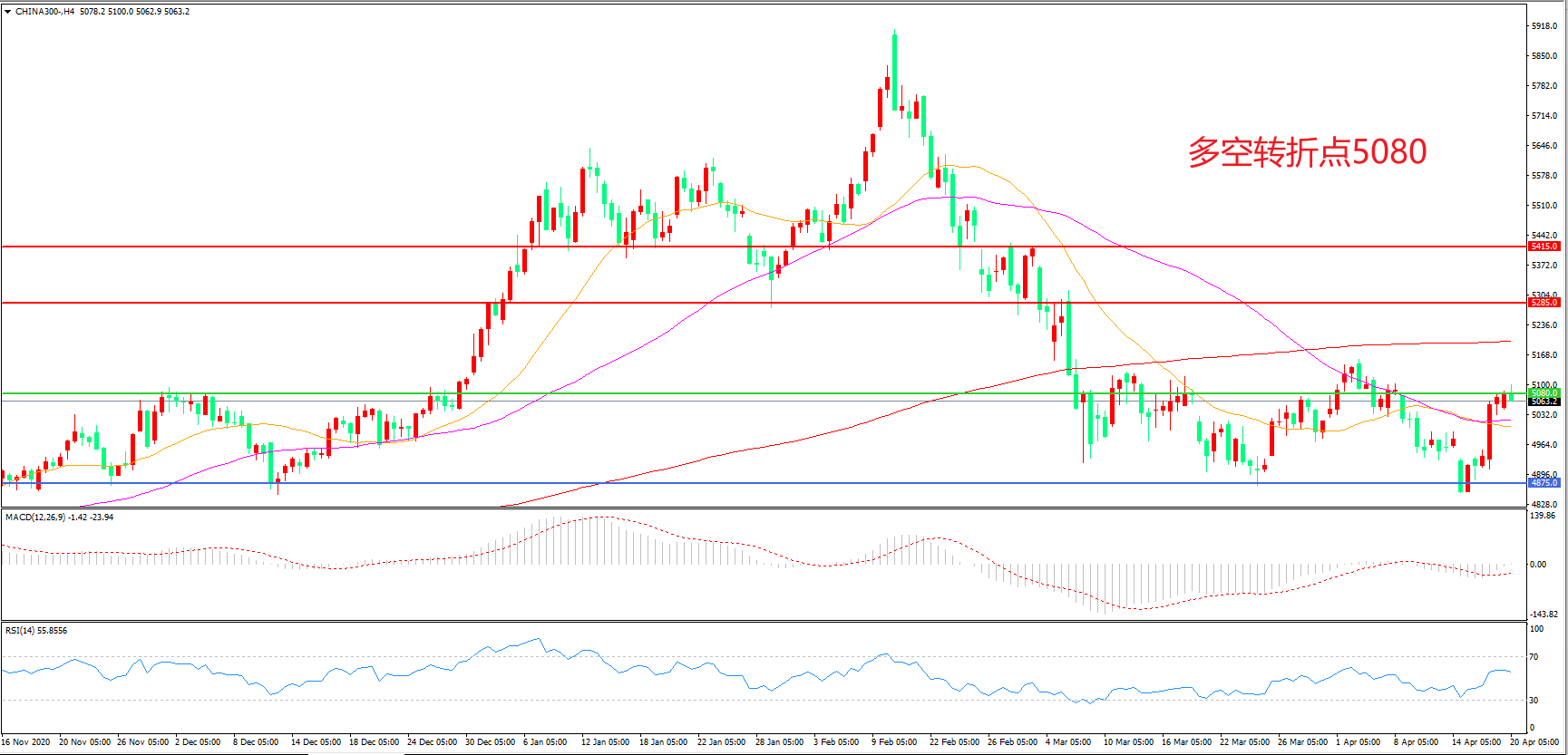 周二(4月20日),A股三大指数全天维持震荡整理态势,最终集体小幅收跌,沪深300延续高位震荡,收报5063.2点。两市合计成交8456亿元,北向资金净卖出4.97亿元。当前A股市场的核心问题是后疫情时代的基本面与政策预期有待重构,从基本面来看,中国经济从整体上已经接近完成“填坑”式复苏,但同时未来美联储政策出现边际收紧导致美股回撤风险也存在,因而沪深300维持震荡格局概率较大。