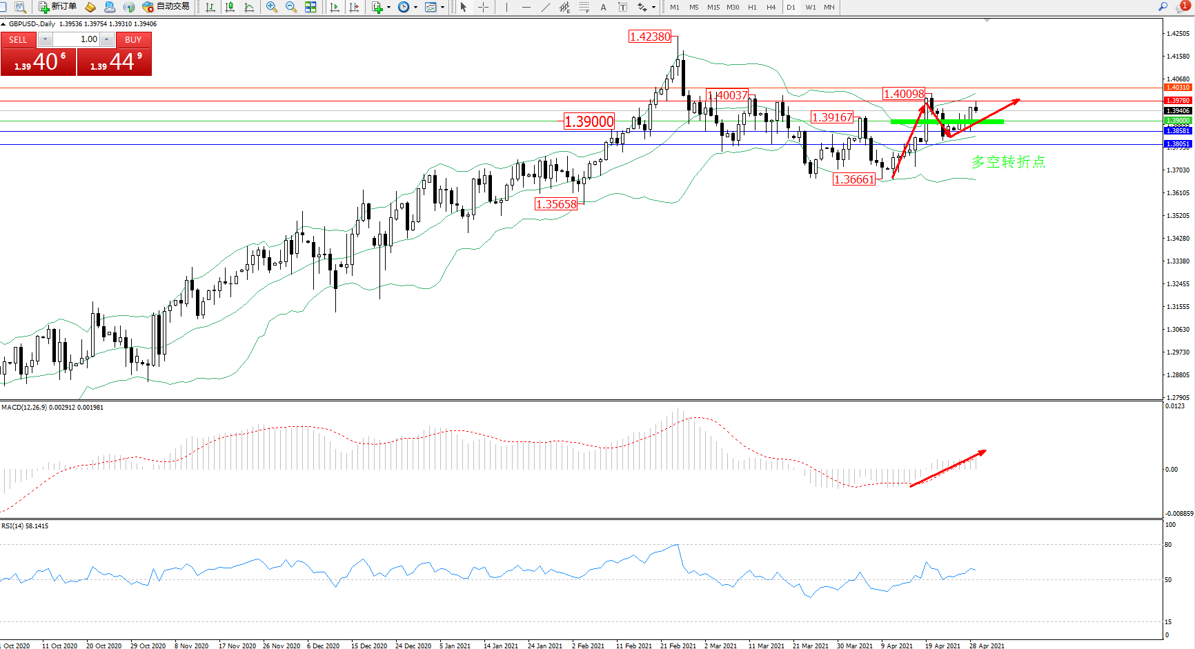交易策略:1.39000上方看涨,目标1.39780、1.40310
