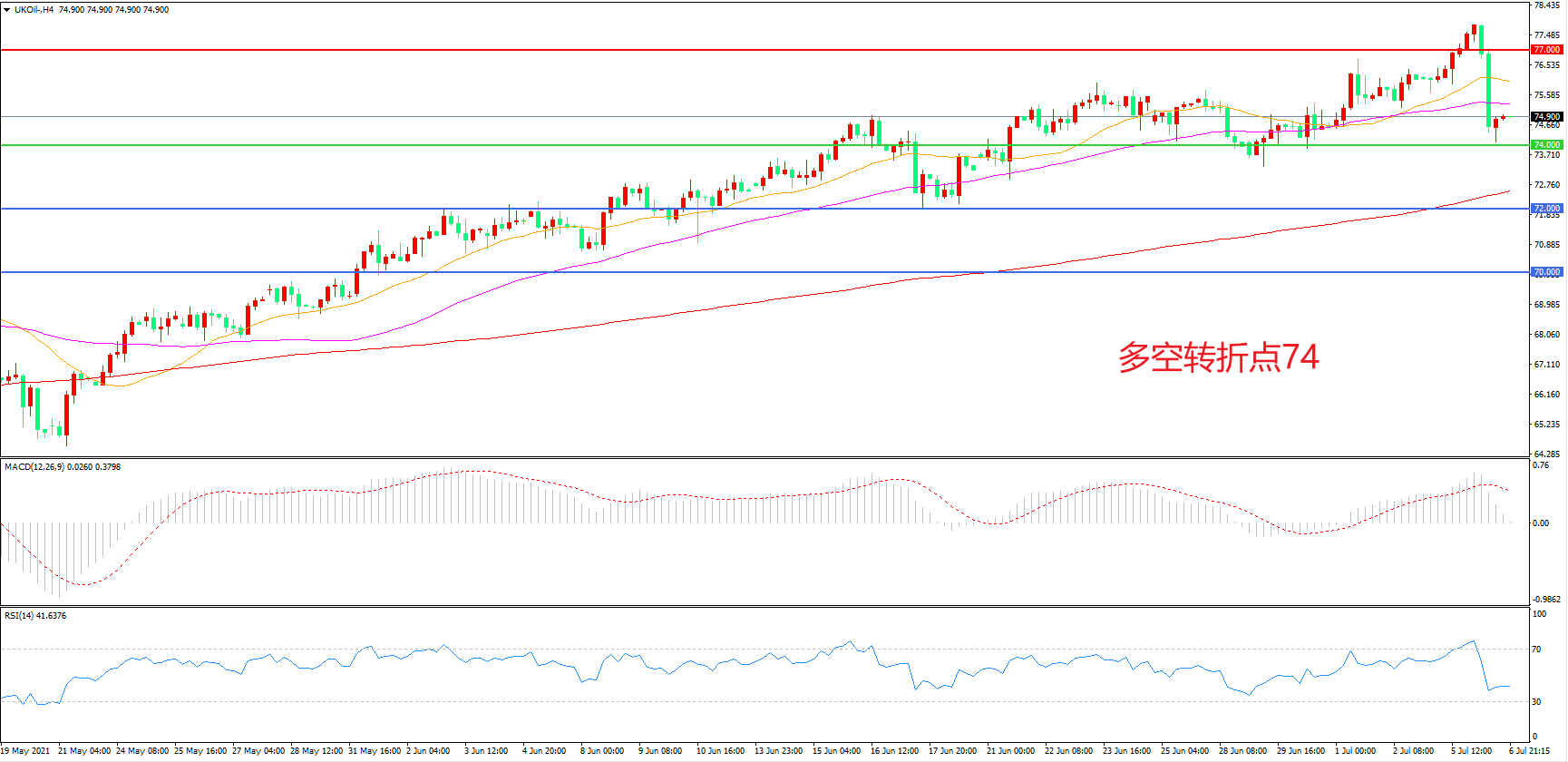 交易策略:在74.00之上看涨,目标77.00 80.00