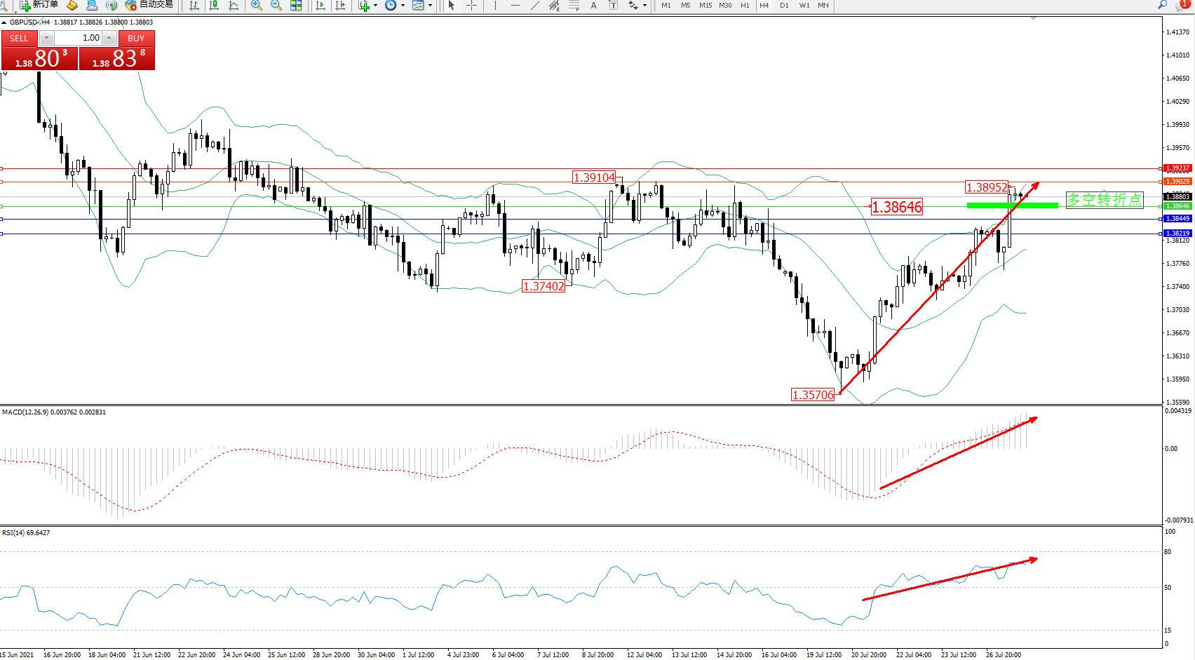 交易策略:1.38646上方看涨,目标1.39029、1.39237