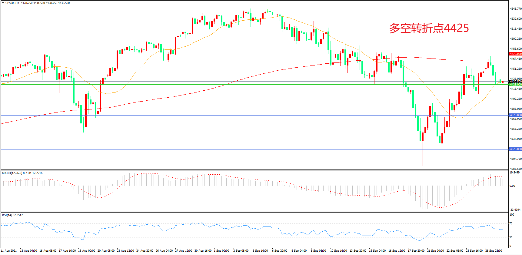 多空转折点:4425.00