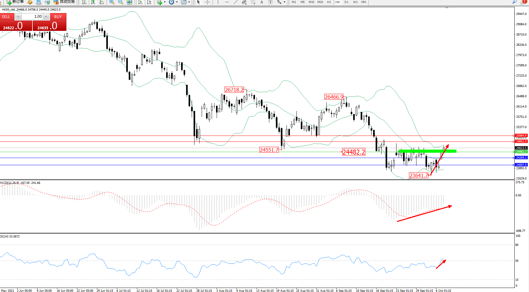 恒指HK50 ——4小时K线图显示: