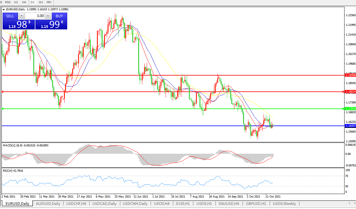 盘中多数时间,欧元兑美元都在距离周二收盘价不到0.2%的范围内交投。欧元尾盘上涨约0.06%,报1.1603。欧洲央行将于周四开会,料将采取鸽派立场。德国政府下调了今年的增长预期,因半导体供应瓶颈和能源成本上涨令复苏放缓。德国10年期国债收益率跌至逾一周最低,收益率曲线趋平。