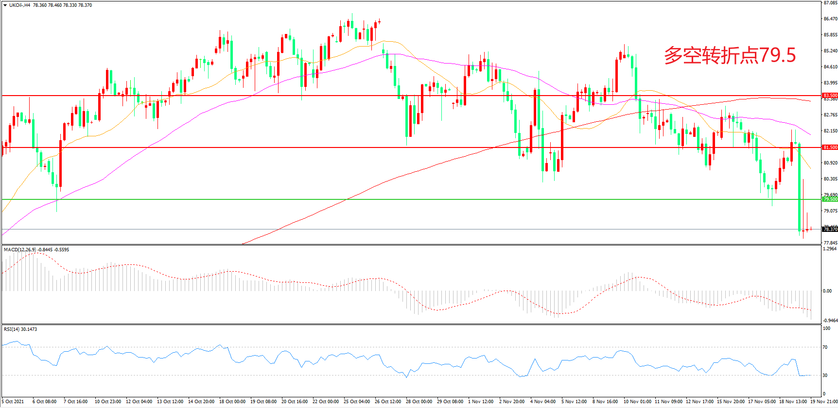 交易策略:在79.50之下看跌,目标77.50                 74.00