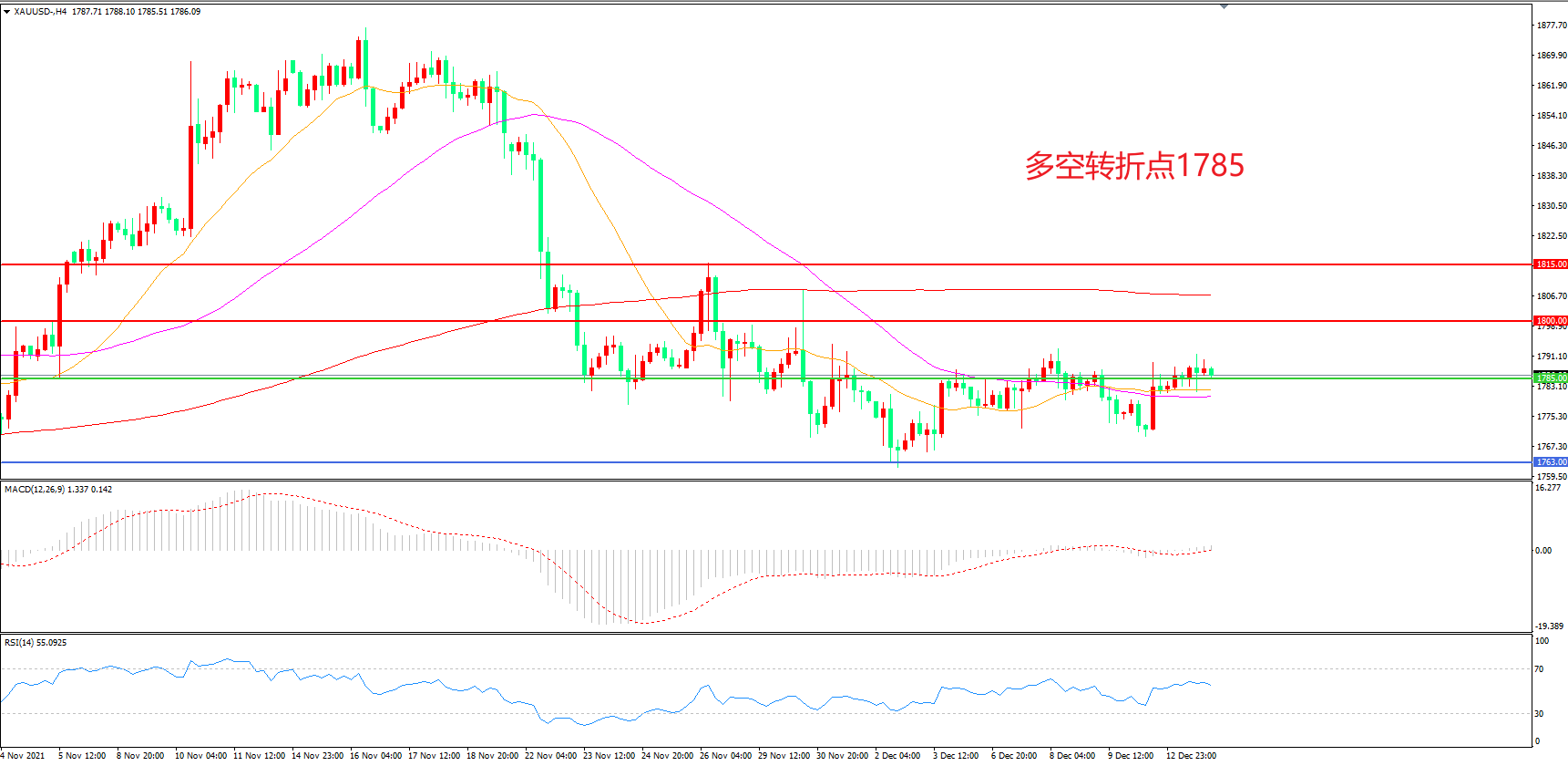 周一(12月13日),央行超级周即将到来,投资者屏息等待会议结果,避险情绪升温推动金价小幅回暖,收报1786.29美元/盎司。目前在通胀高企的背景下,有抗通胀属性的黄金受到市场青睐,但同时市场对美联储加速缩债的预期升温,这又限制金价的涨幅,市场都在等待各大央行的利率决议来判决未来金价的走势方向。