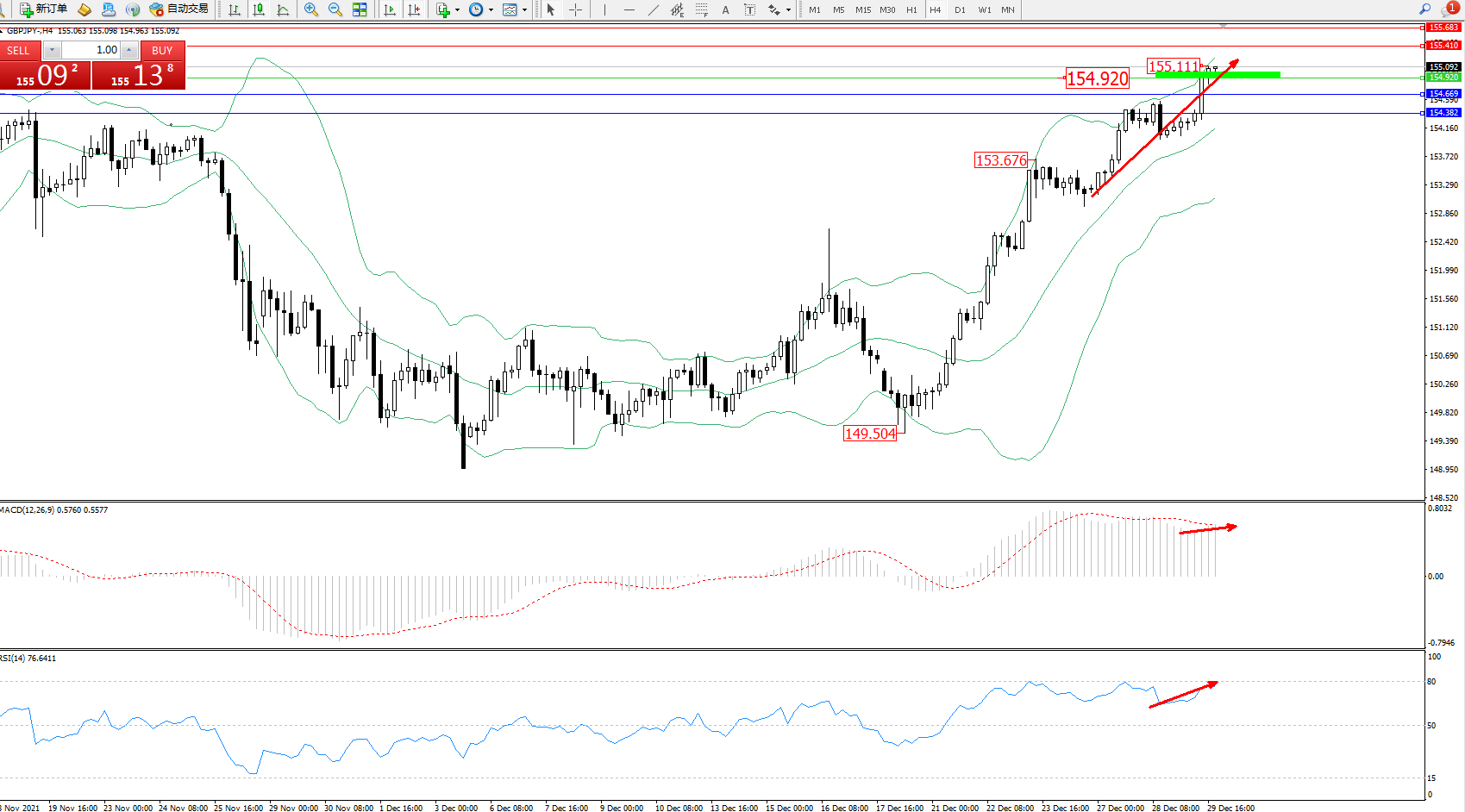 技术点评:多头动力延续布林带指标中上轨区间持续震荡上扬,高位抵达155.111附近节点后整理,短期多头动力有继续攀升态势,布林带指标呈上行趋势走势良好,MACD指标处于多头区域维持整理平移,RSI指标处于多头区域多次试探高位超买区80均衡线附近节点;