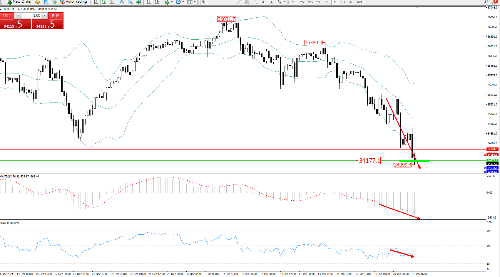 道琼斯指数1月21日(周五)收盘下跌449.89点,跌幅1.30%,报34265.50点;美国股市周五收跌,并录得自新冠疫情爆发以来表现最糟糕的一周。科技股伴随着表现欠佳的财报季和美国加息预期领跌。虽然这周交易日只有四天,但感觉像是浓缩了两周的走势。目前为止美国财报季喜忧参半,可能无法激发股市风险偏好。市场也在为美联储加息做准备。接受彭博调查的经济学家预计,决策者将在3月进行三年多来的首次加息,然后很快缩表。另外,地缘政治紧张局势也使市场更加不安。
