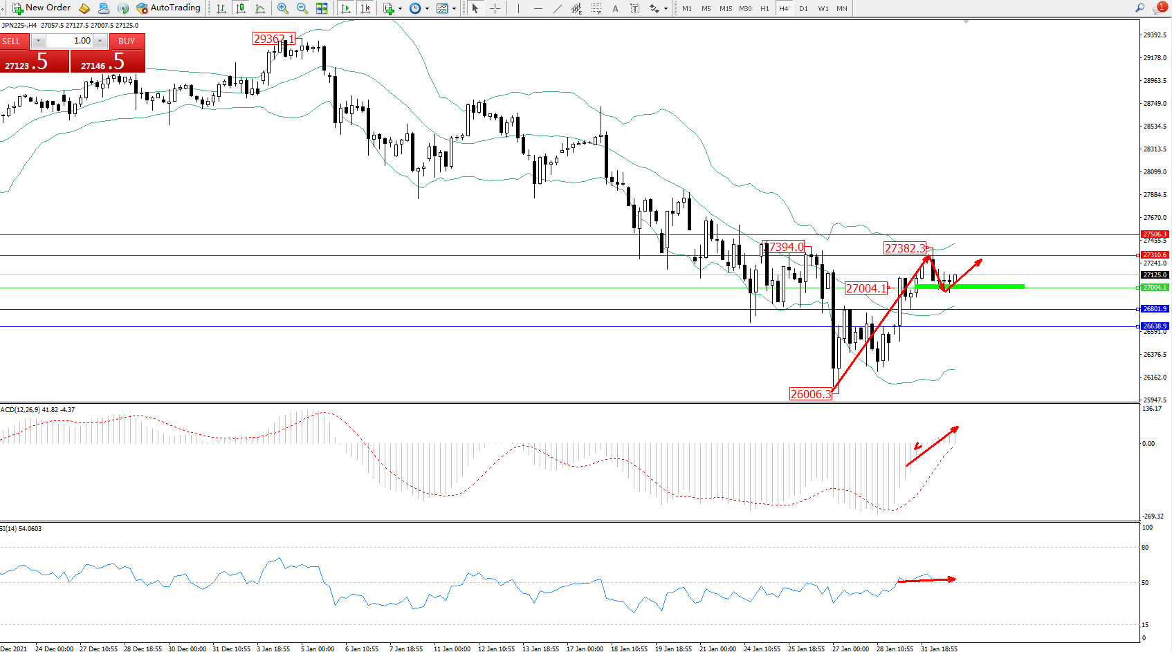 交易策略:27004上方看涨,目标27310、27506