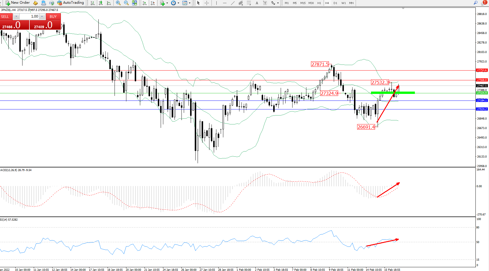交易策略:27324上方看涨,目标27568、27753