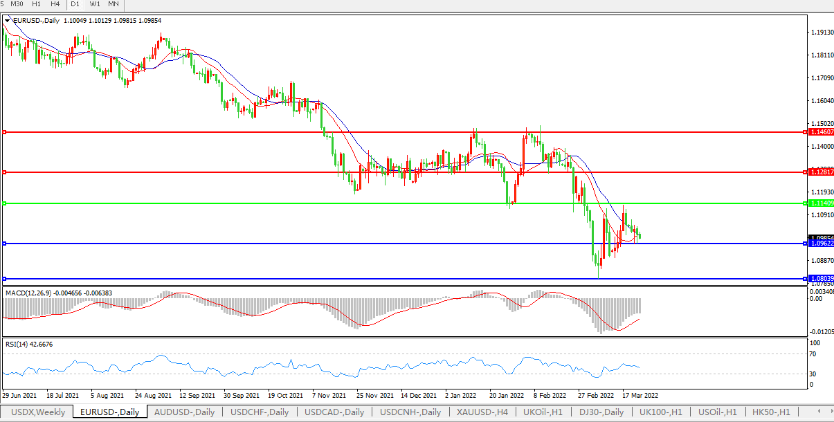 技术面简析:日图均线呈空头排列但短期均线开始拐头,汇价延续弱势弱势,MACD运行于0轴下方但量能0轴下持续缩量,RSI小幅回落,预计短期汇价大概率将进一步下行。