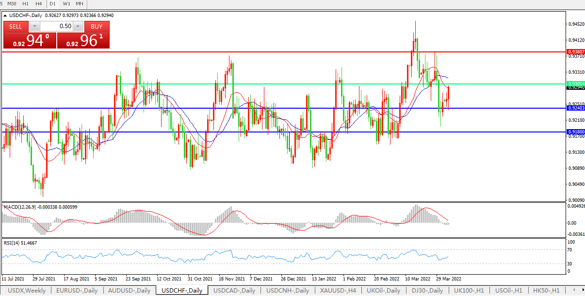 交易策略:0.9300下方看跌,目标0.9240、0.9180