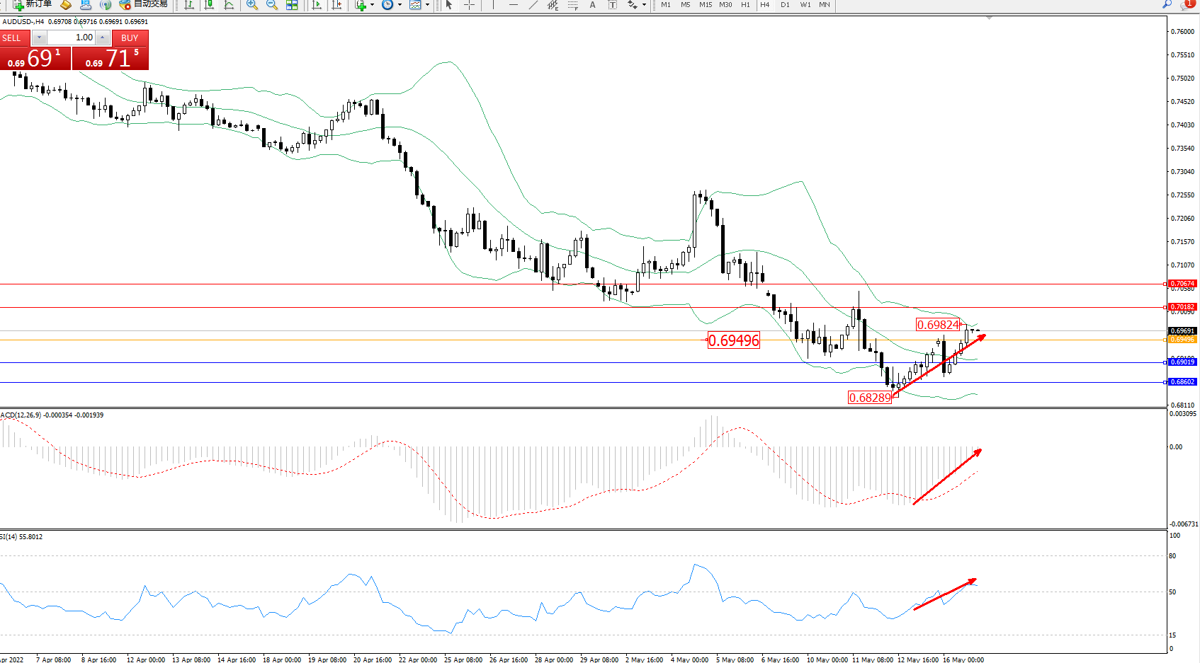 澳元兑美元维持0.69691附近震荡,国家统计局公布的最新数据显示,虽然4月份疫情给中国经济带来一些不利影响,但中国经济稳中向好、长期向好的基本面没有改变,转型升级、高质量发展的大势没有改变,稳定宏观经济大盘、实现发展预期目标有利条件较多。事实再次证明,中国经济的韧性是经得起考验的。