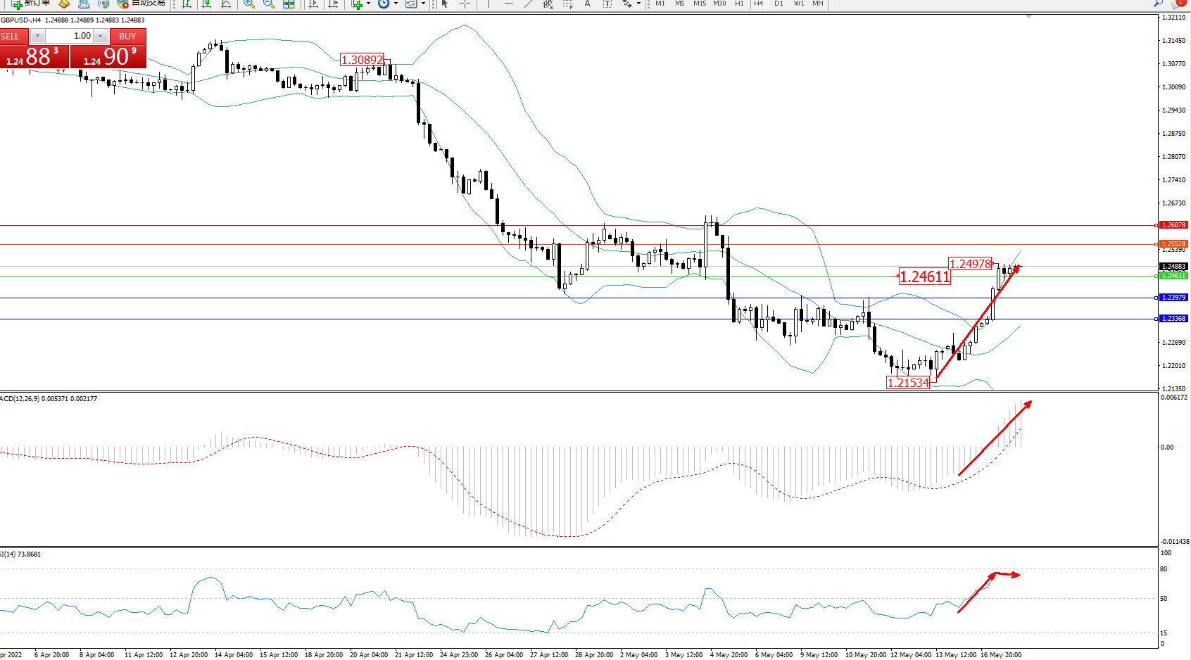 英镑美元GBPUSD ——4小时K线图显示: