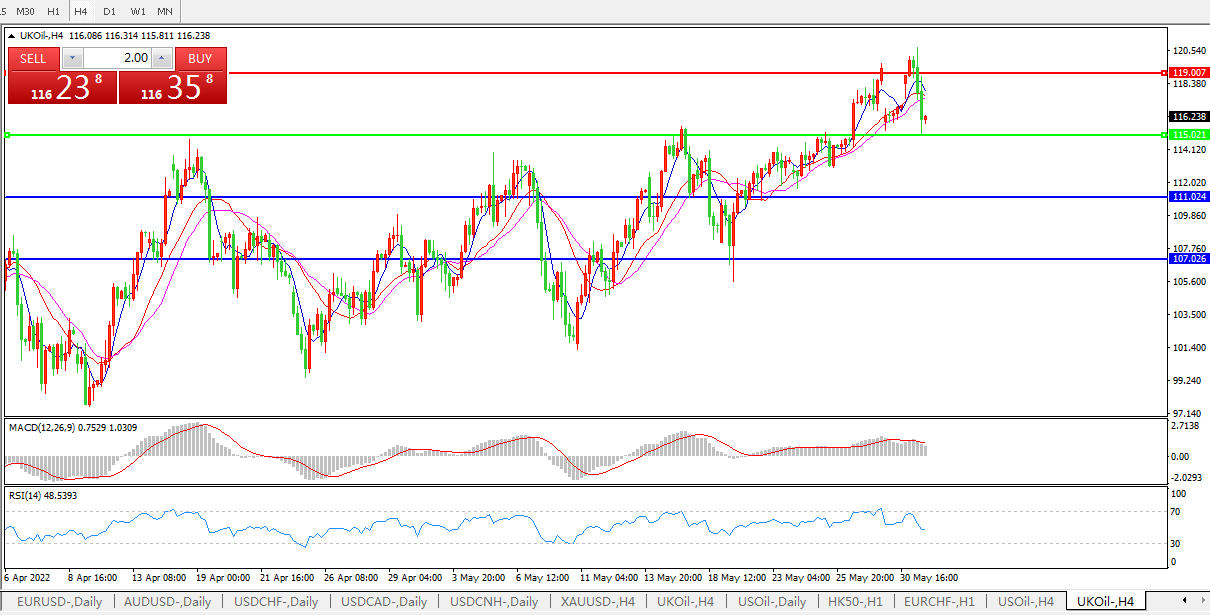 英国原油UKOIL     4小时图