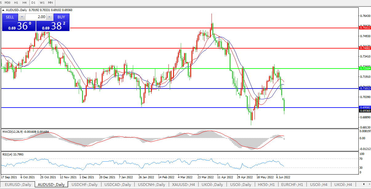 AUDUSD  NZDUSD 美联储或激进加息,澳元兑美元急速回落