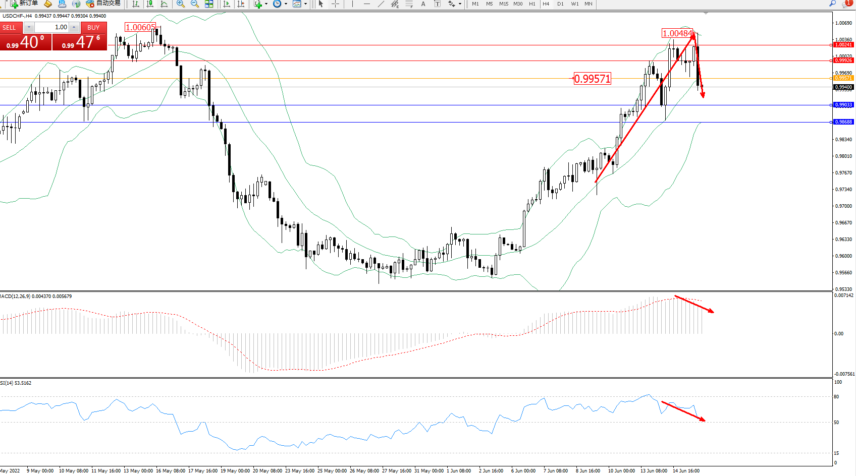 美元兑瑞郎维持0.99400附近震荡,美联储将基准利率上调75个基点至1.50%-1.75%区间,加息幅度为1994年以来最大。