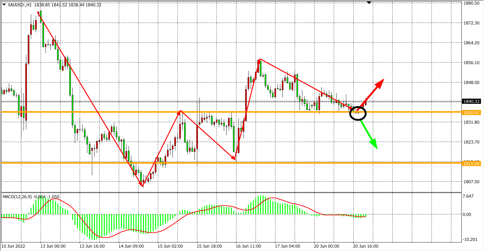 黄金:围绕1840震荡