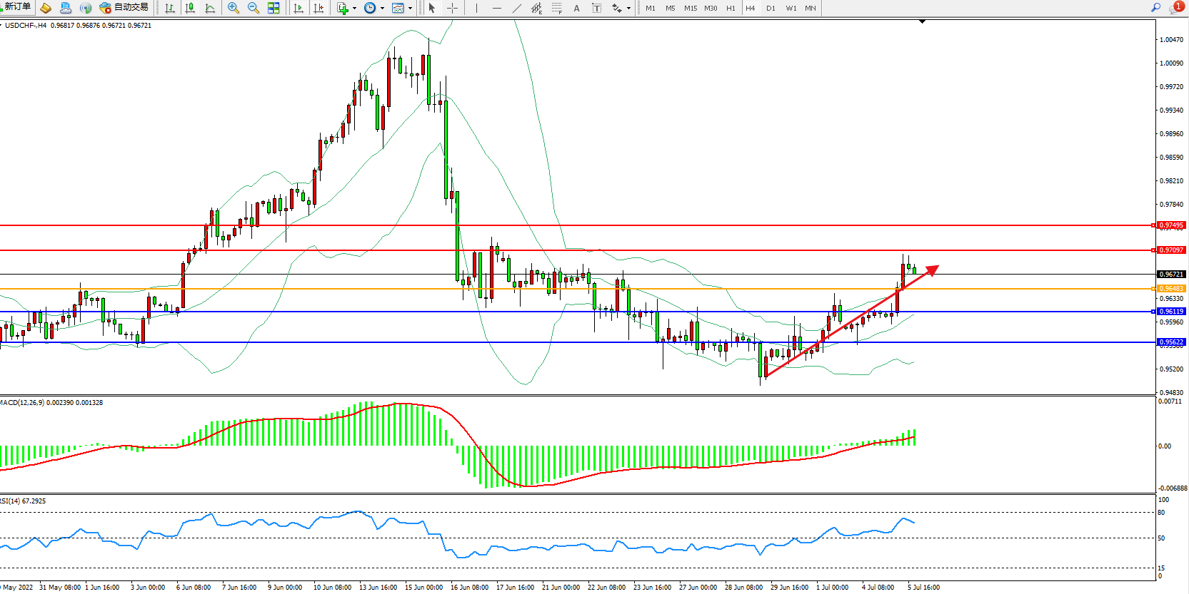 美瑞:强势上行 USDCHF  XAUUSD