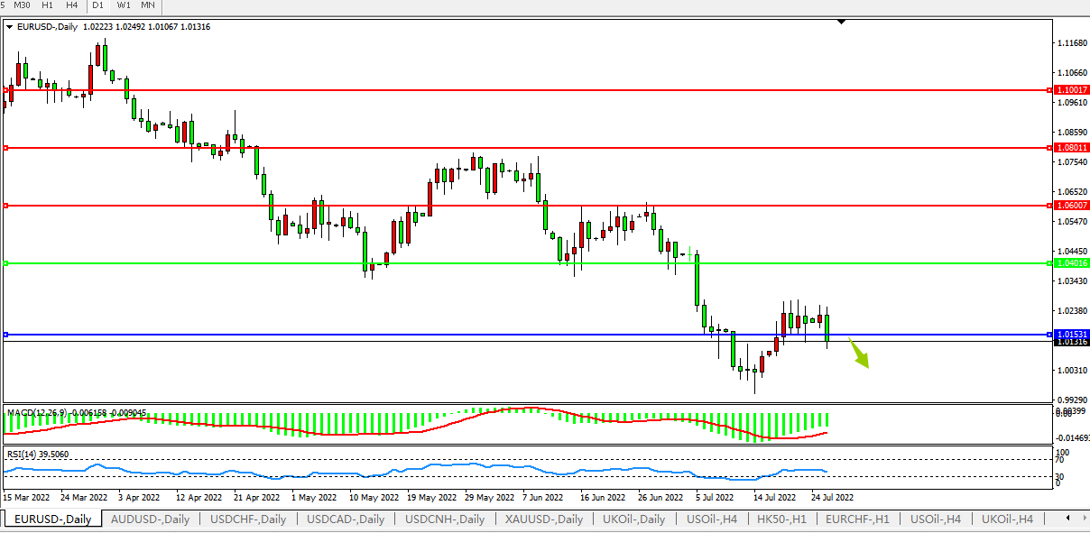 交易策略:1.0400下方看跌,目标1.0150、1.0000