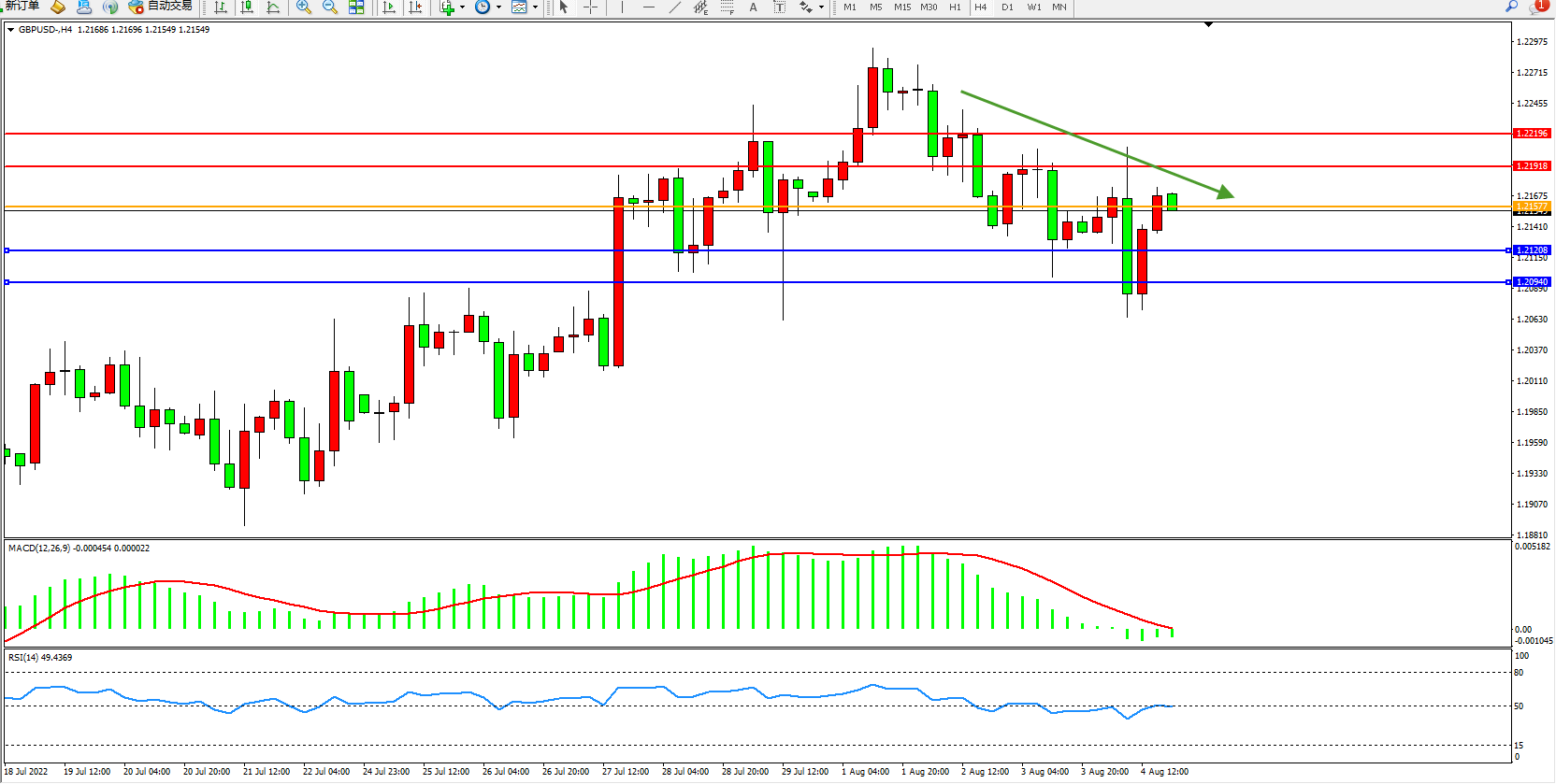 交易策略:1.21577下方看跌,目标1.21208、1.20940