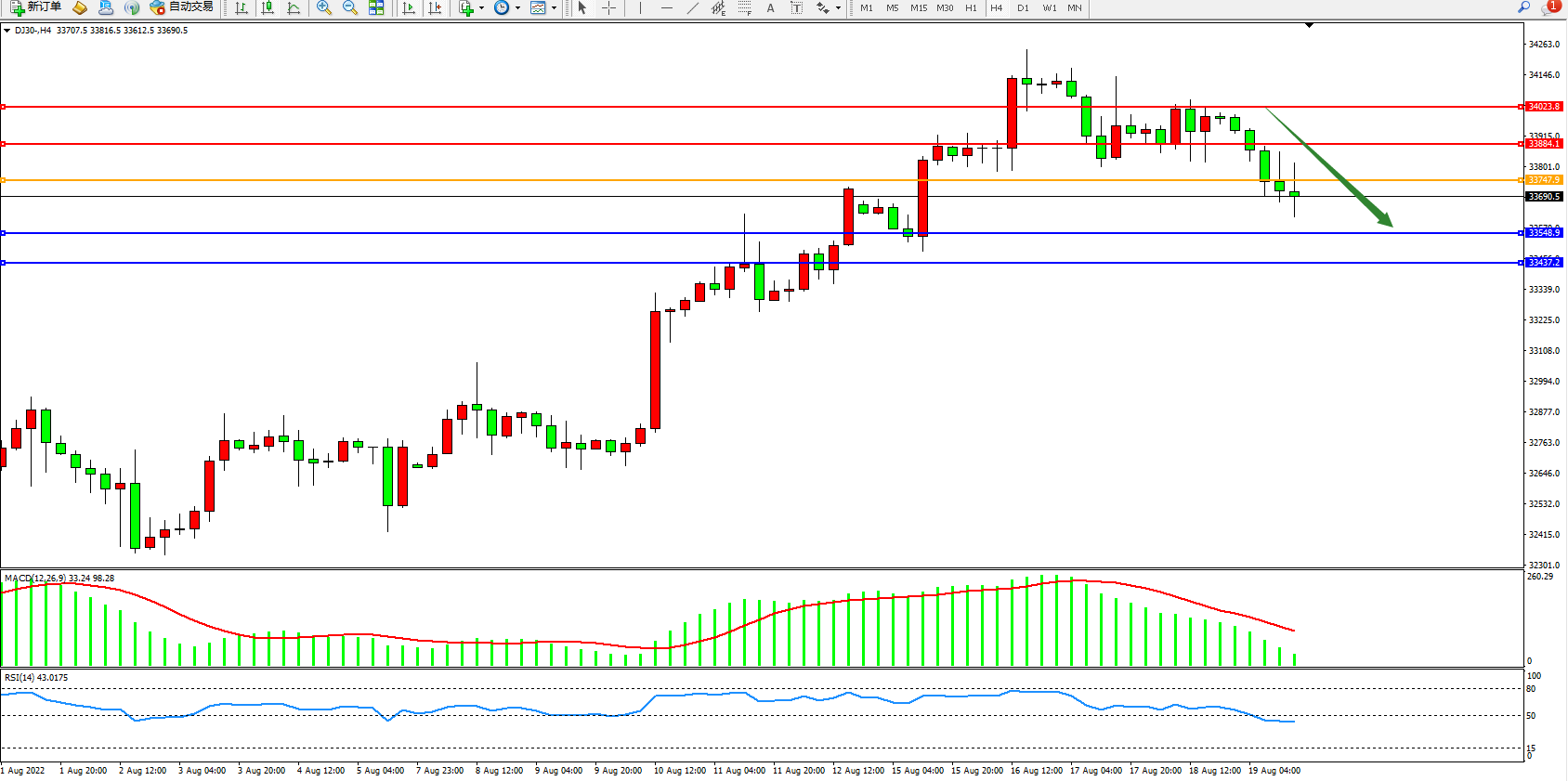 道琼斯指数8月19日(周五)收盘下跌292.30点,跌幅0.86%,报33706.74点;尽管美联储面临着过度加息的风险,但高企的通货膨胀可能导致美联储不得不加息。