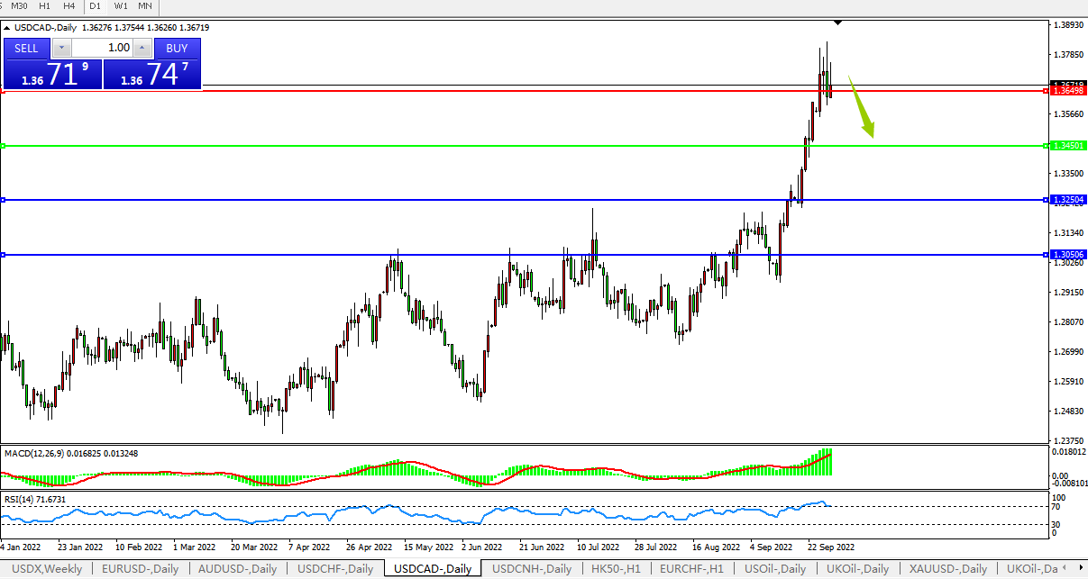 美元兑加元USDCAD  日线图: