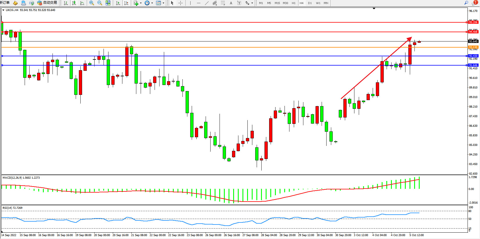 布油维持93.640附近震荡,欧佩克+两年来最大的减产几乎没有对市场产生影响。石油期货实际上下跌了。如果经济衰退被证明是真的,需求减弱,价格可能会更低。
