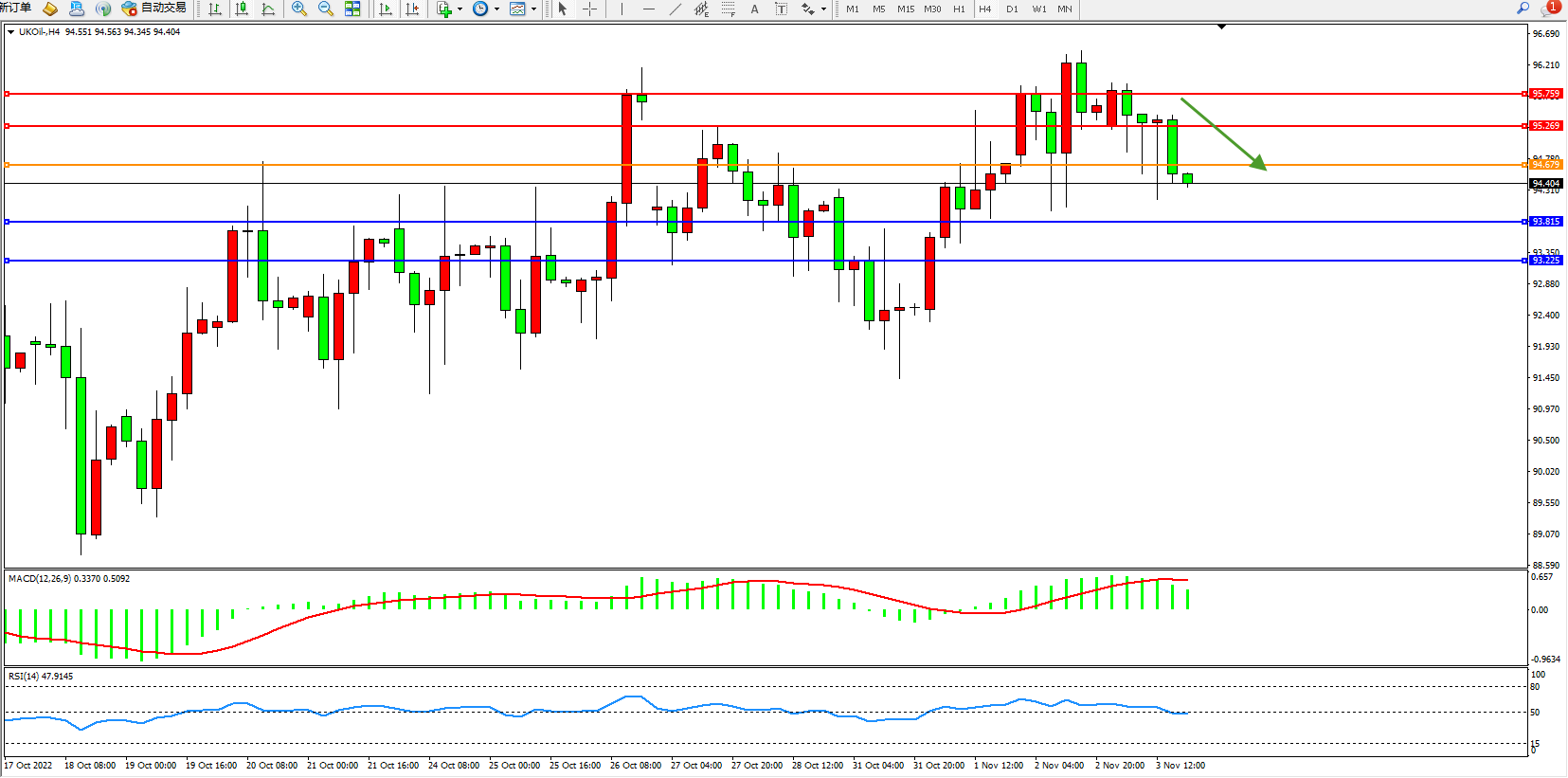 4小时图看:高位空头动力维持窄幅震荡下行,短期跌势或将延续,市场空头情绪伺机入场下移,MACD指标处于多头区域维持窄幅整理,RSI指标处于50均衡线附近弱势徘徊;