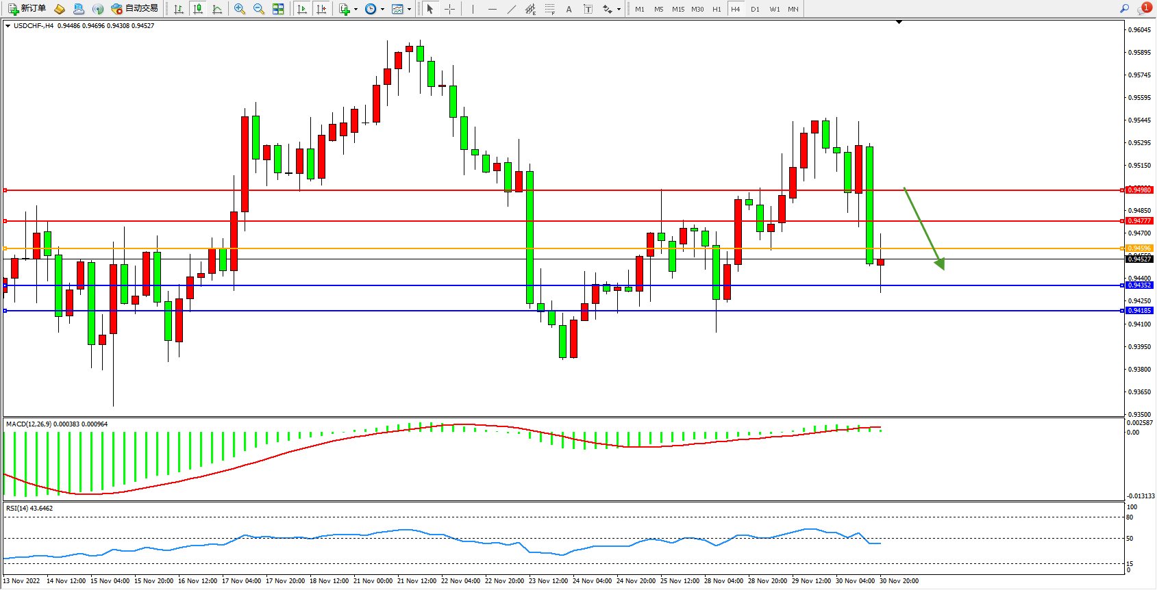 备选策略:0.94596上方看涨,目标0.94777、0.94980