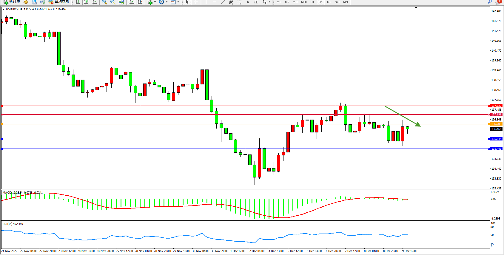 美元兑日圆维持136.466附近震荡,美联储调升利率峰值预期走高,美元预计将保持强劲。而疲软的国内数据显示,日本10月份实际工资录得逾7年来的最大跌幅,这削弱了日元。