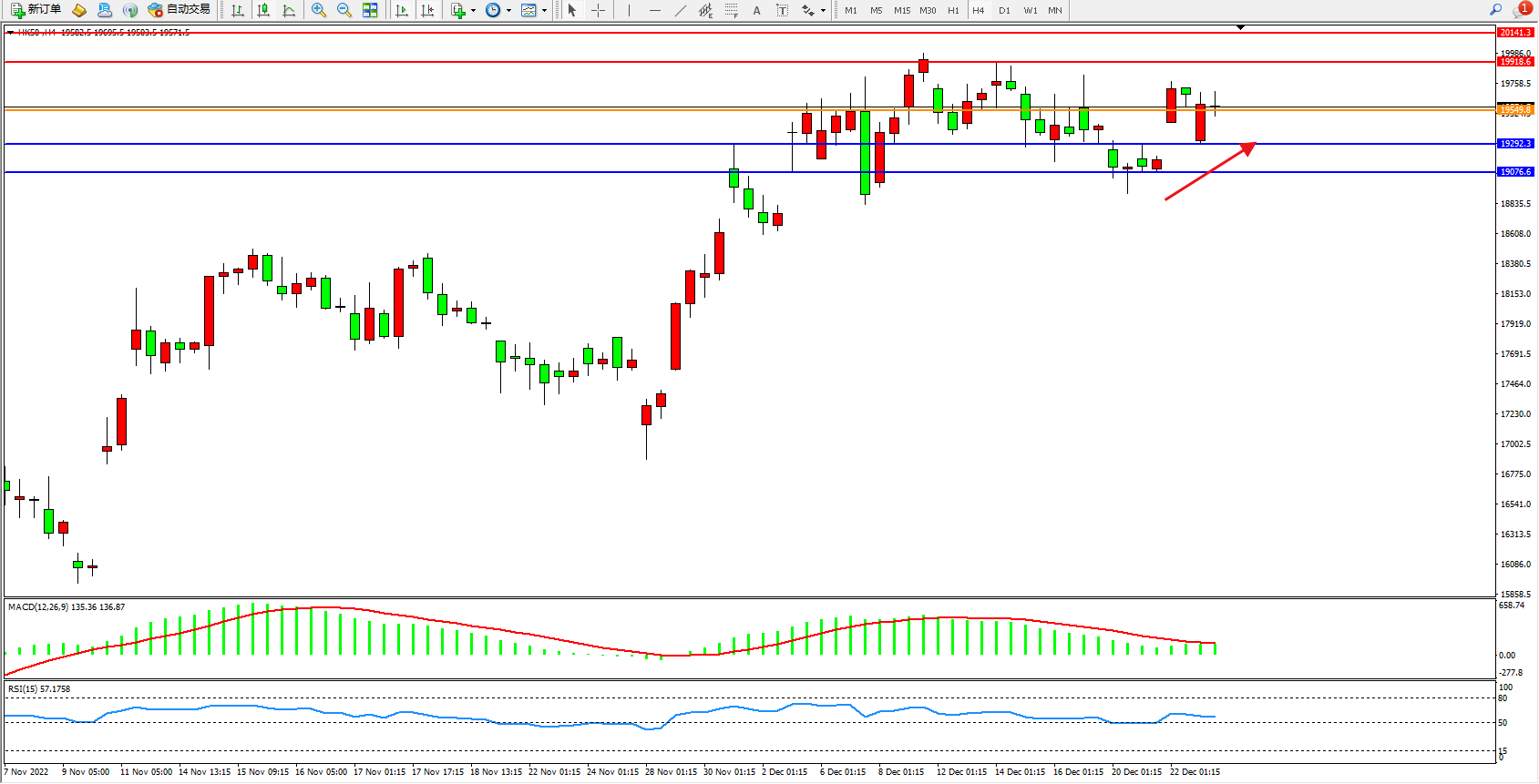 香港恒生指数12月23日(周五)收盘下跌86.16点,跌幅0.44%,报19593.06点;受隔夜美股下跌影响,港股全天表现疲弱,恒生科技指数跌2.05%。大型科技股纷纷走低,阿里巴巴、美团、腾讯均有跌幅;重磅文件刺激教育股持续走强,新东方在线再创历史新高,南下资金净流入23.41亿港元,大市成交额不足800亿港元。圣诞节休市。