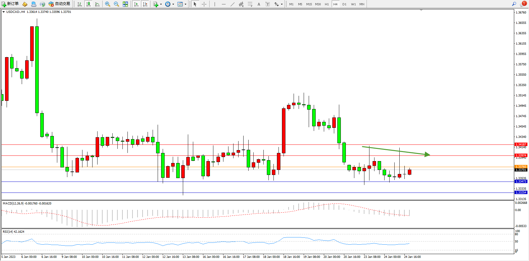 交易策略:1.33760下方看跌,目标1.33473、1.33254