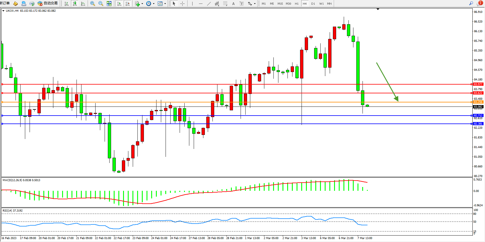 布油UKOil——4小时K线图显示: