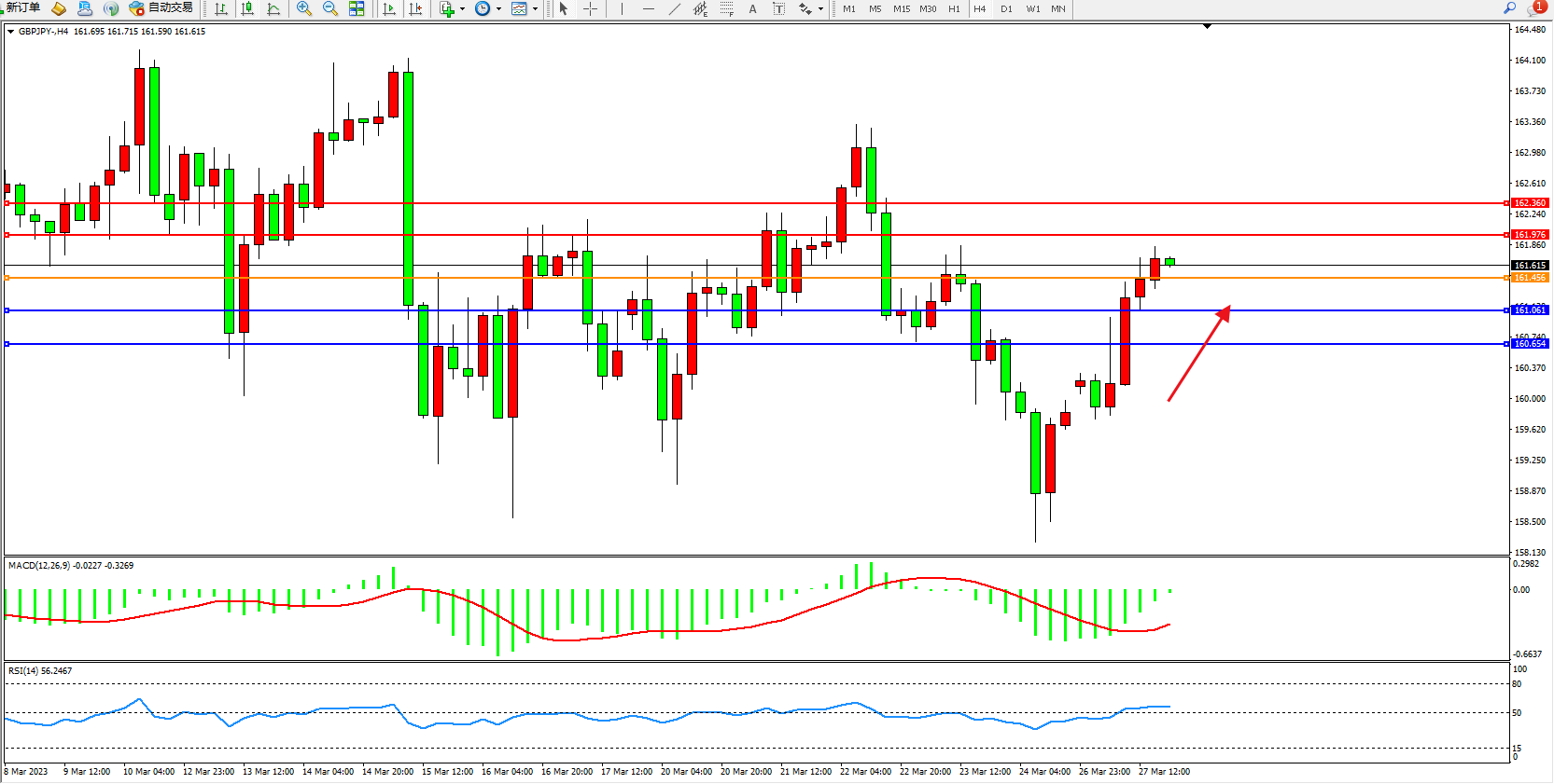 交易策略:161.456上方看涨,目标161.976  162.360